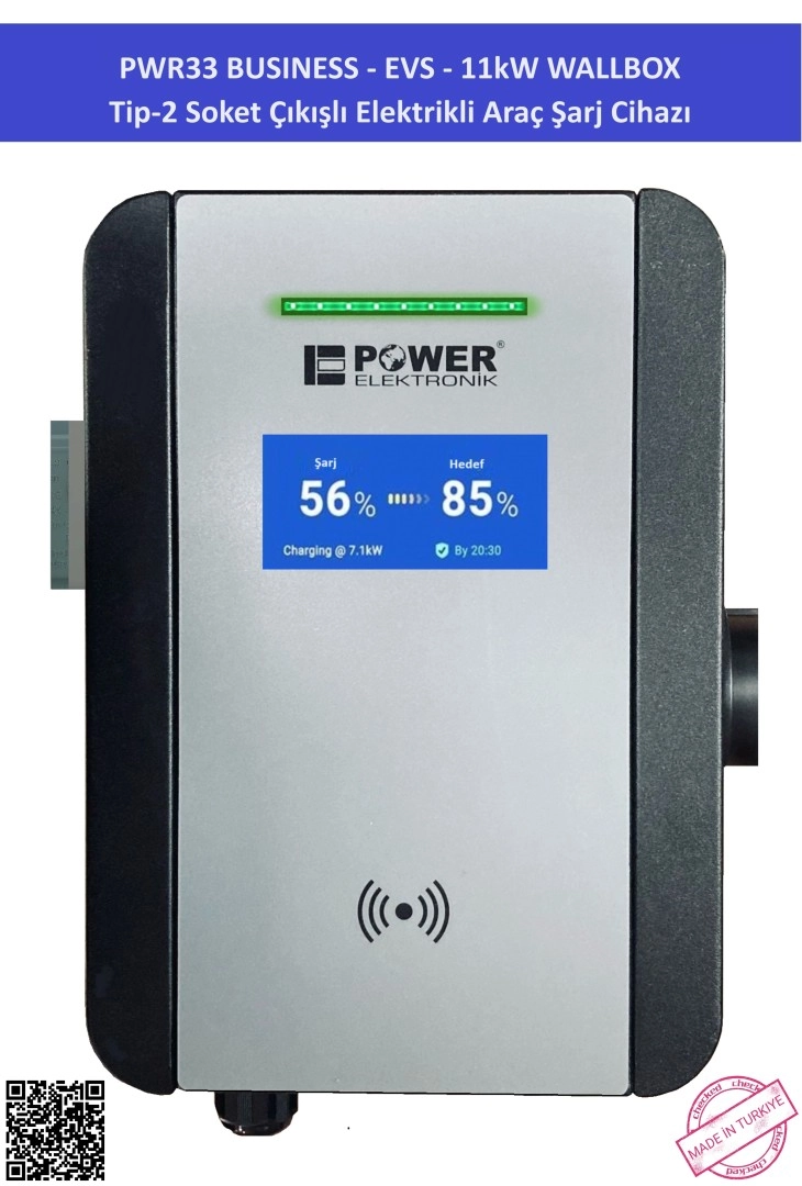 PWR33 BUSINESS-EVS-11 kW WALLBOX Tip-2 Soket Çıkışlı Araç Şarj Cihazı